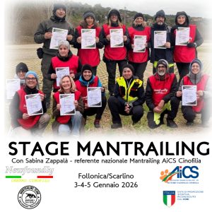 Tre giorni intensi di Mantrailing, tre giorni di lavoro, divertimento e crescita per binomi e istruttori. Dal 3 al 5 gennaio 2026 il nostro centro cinofilo ha organizzato uno stage di Mantrailing in collaborazione con Sabina Zappalà, docente del corso e referente nazionale AiCS Cinofilia per il settore Mantrailing.